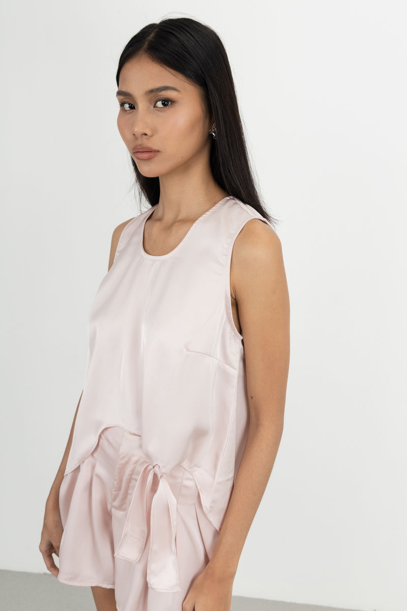 Rounded neck, sleeveless, back zipper details, assymetrical crop cutting & regular fit. Available in three colors: Broken White, Khaki & Peach. Model wears size S ; height 170cm.